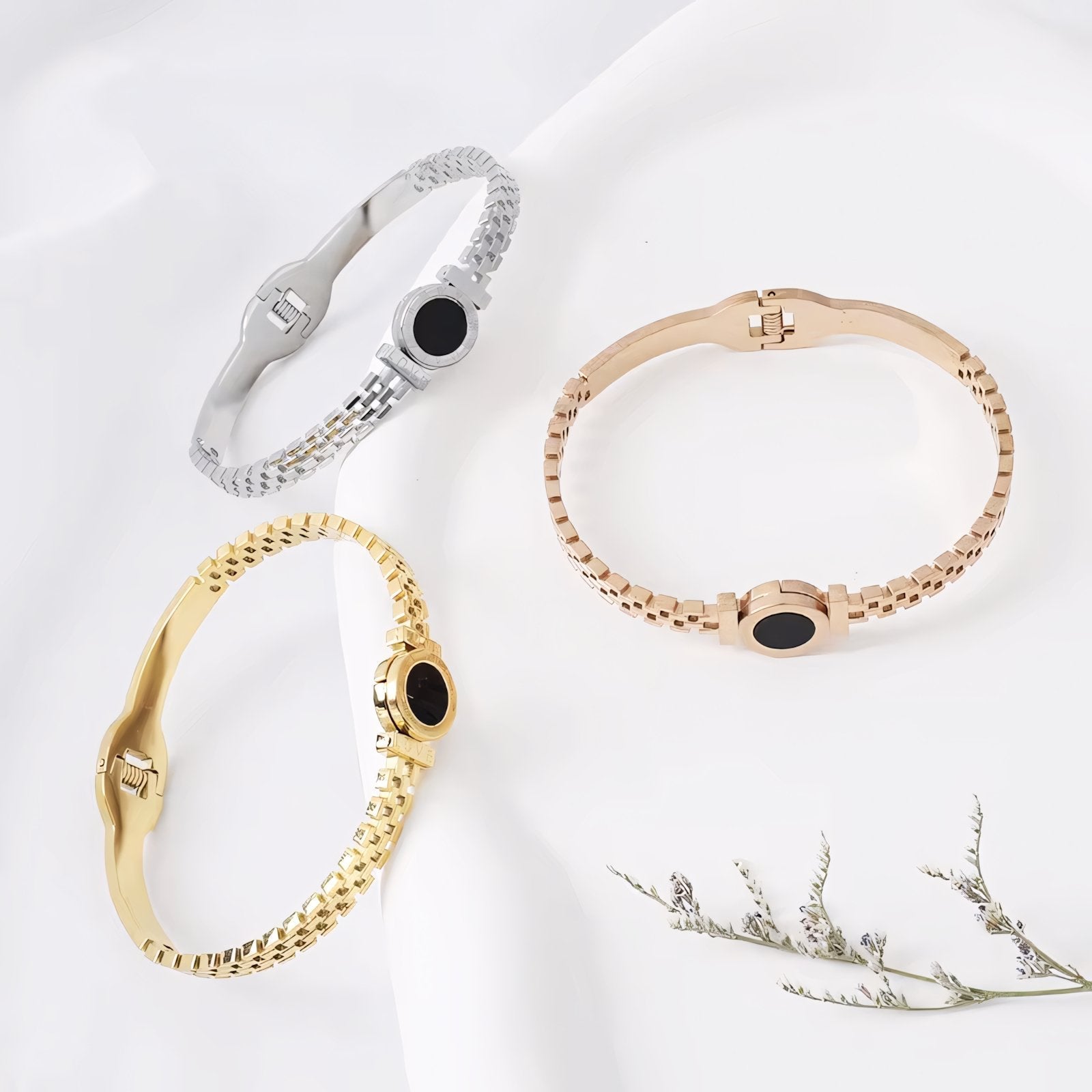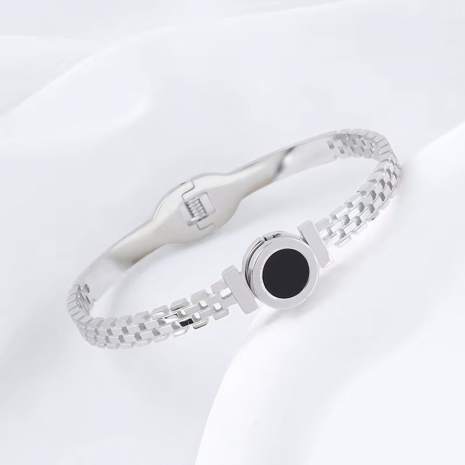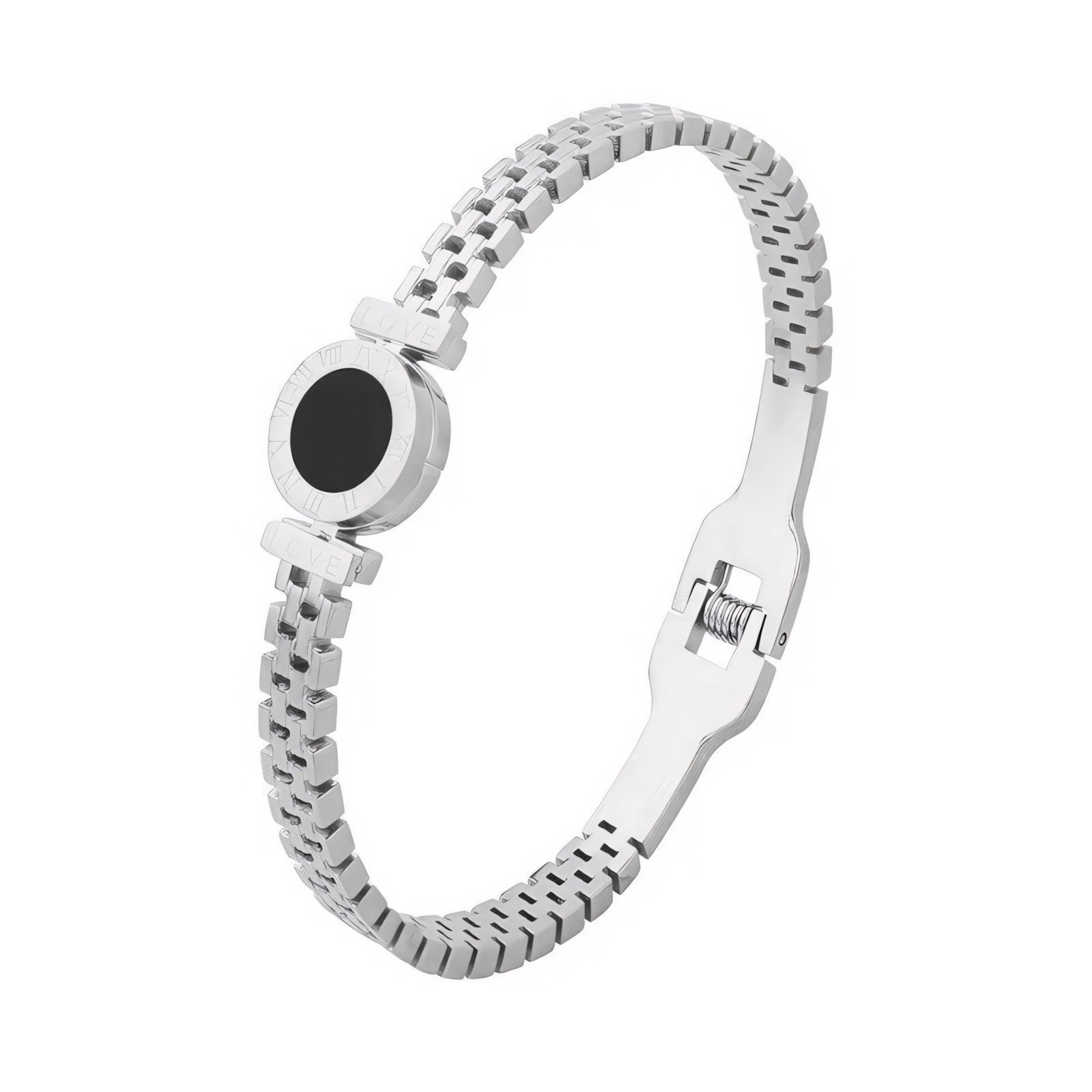 Ulippa's Black Center Roman Numeral Accented Bangle Bracelet is more than just an accessory; it’s a statement of elegance and classic design. Whether worn alone or paired with other jewelry, this bracelet promises to enhance your look with its refined design and sophisticated appeal. Treat yourself or someone special to this beautifully crafted piece and embrace the timeless charm of Roman numeral-inspired jewelry.