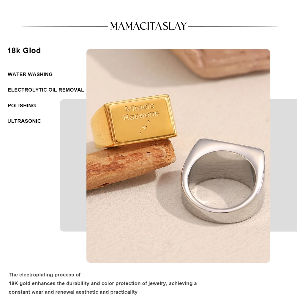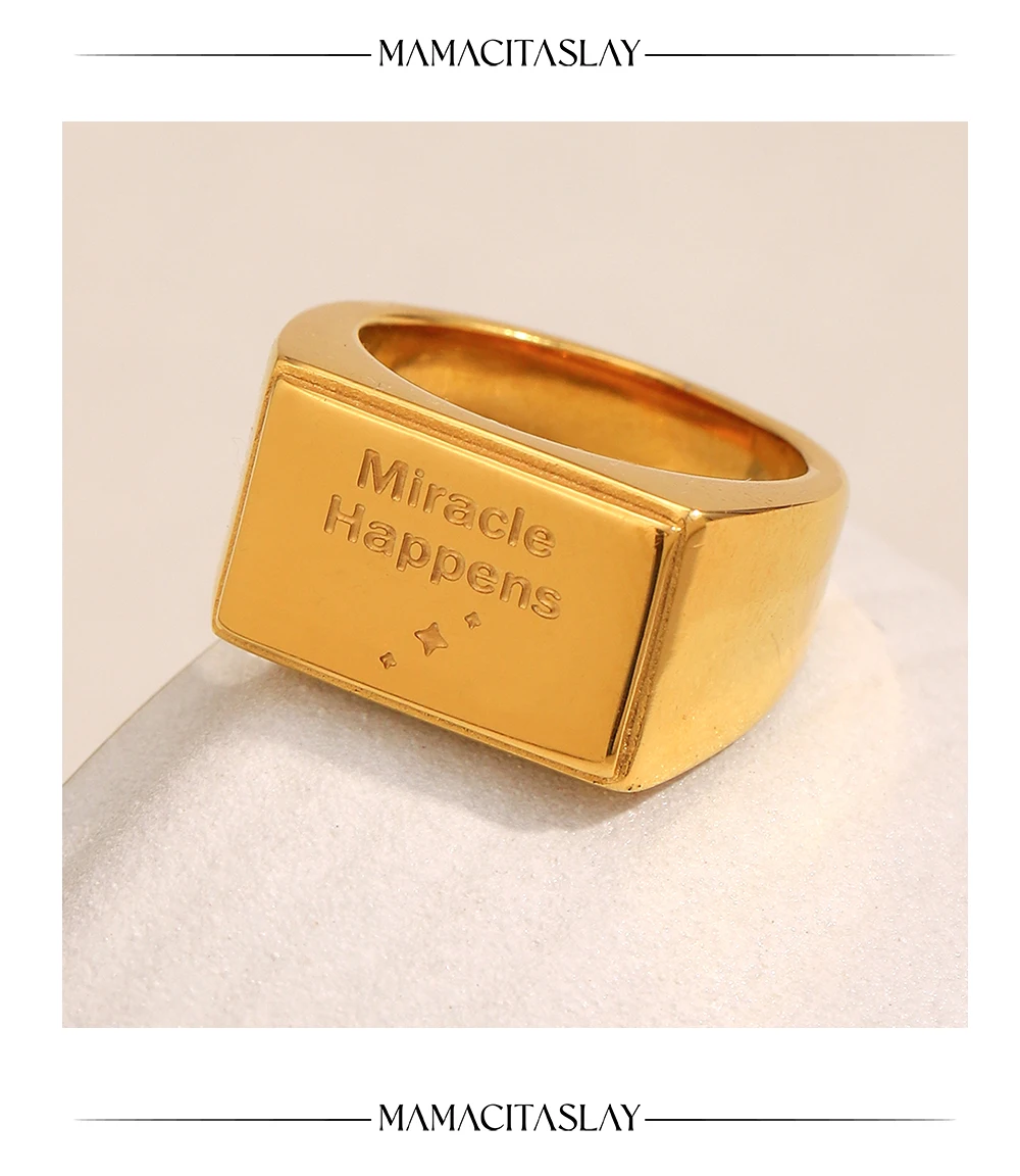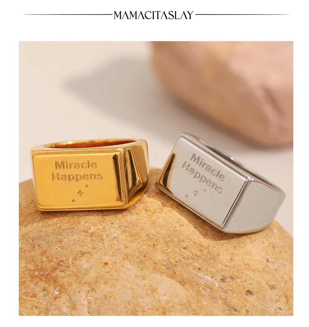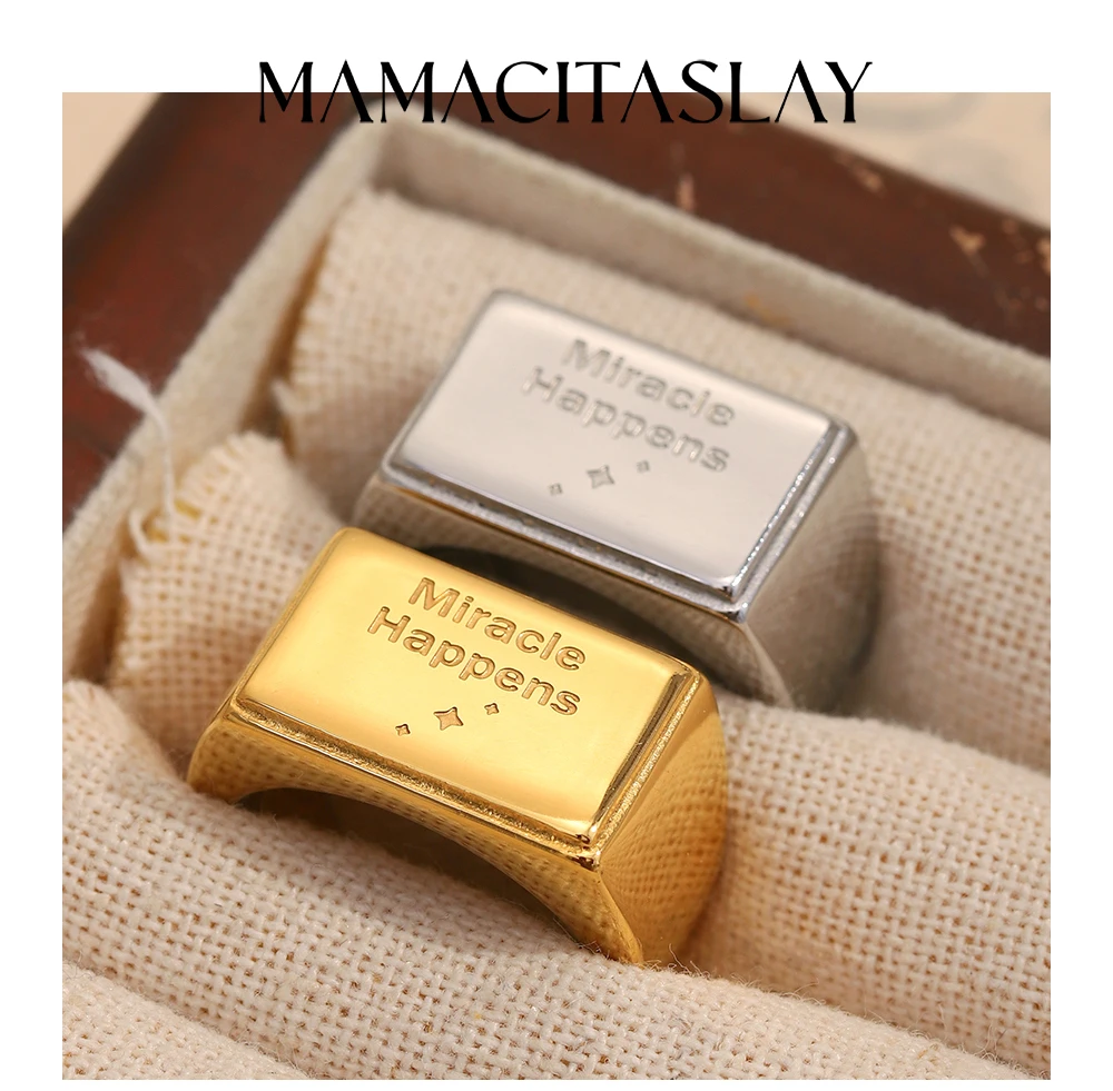 MamacitaSlay 316L Edelstahl "Miracle Happens" Buchstabenring Party Wasserdichter Schmuck Damen Klassischer Charm-Ring 2025 Geschenk