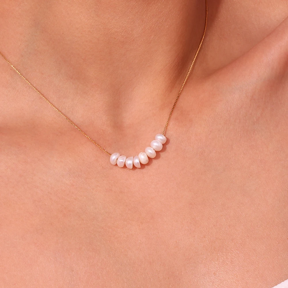 La.Muses Natuurlijke Parelkralen Chique Elegante Exquise Ketting Dunne Ketting Roestvrij Staal Minimalistische Charme Kraag Sieraden Vrouwen