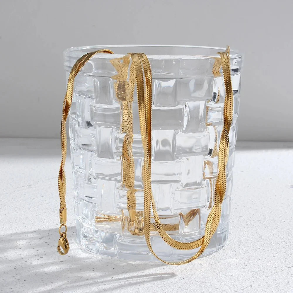 Ulippa's 18k Interwoven Herringbone Chain Necklace and Bracelet Set is more than just jewelry; it’s a statement of elegance and sophistication. Whether worn together for a coordinated look or separately to complement other pieces, this set is perfect for any occasion. Elevate your style or gift someone special with this beautifully crafted set, and experience the timeless allure of herringbone chains.