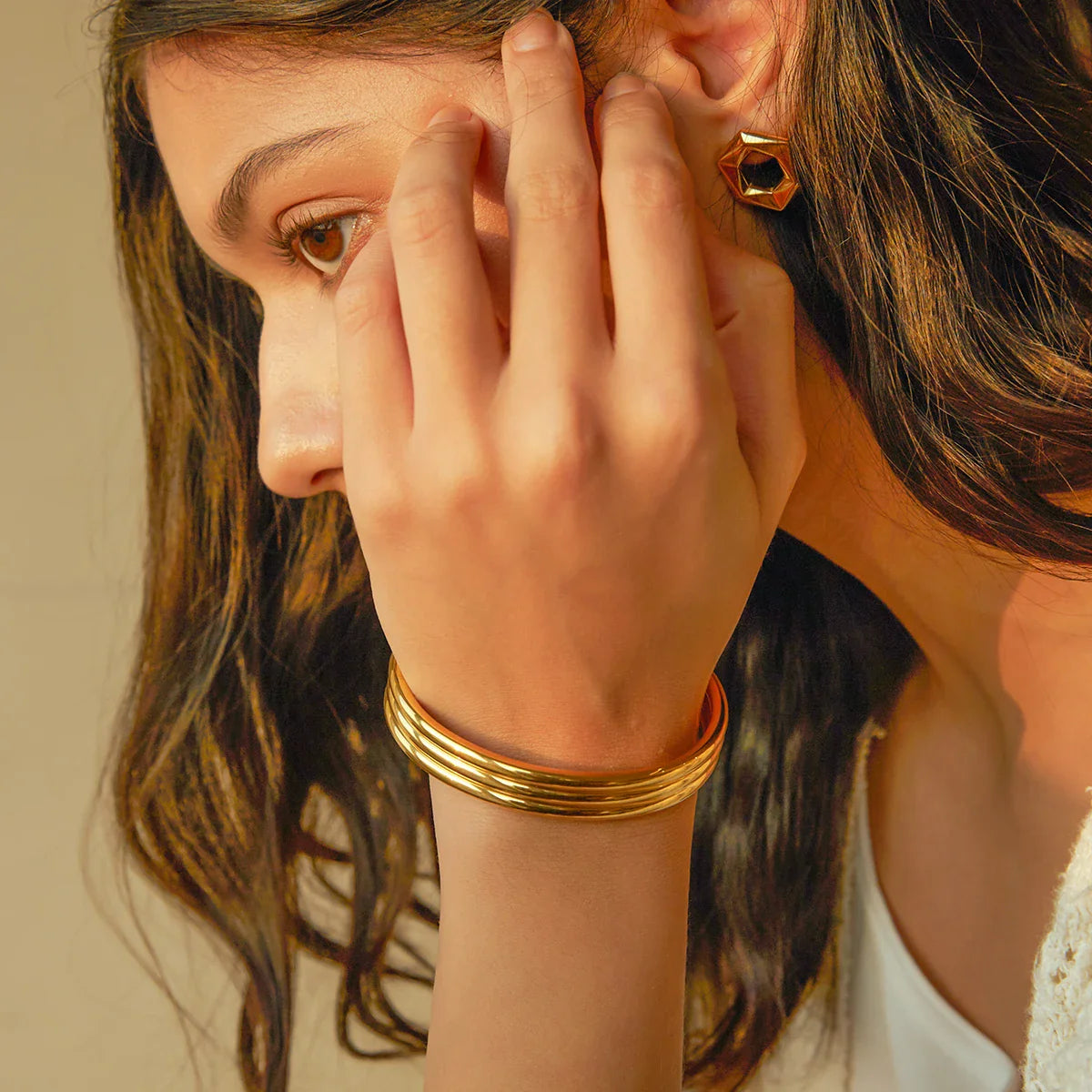 Ulippa introduces the 18k Triple Ribbed Bangle Bracelet, a timeless piece that combines classic elegance with modern minimalism. This beautifully designed bangle exudes sophistication and is perfect for those who appreciate refined, versatile jewelry.