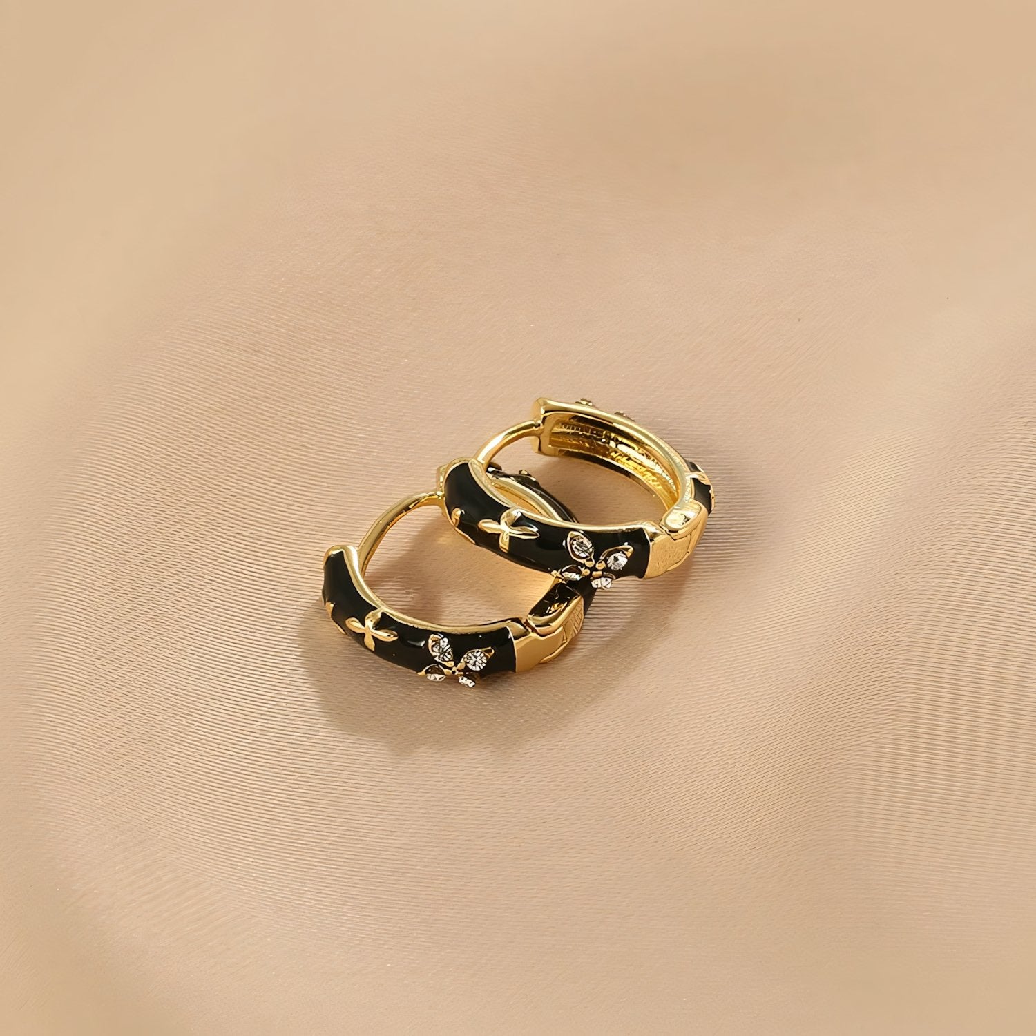 Indulge in the delicate charm of Ulippa's Dainty Black and Gold Floral Hoop Earrings, a perfect blend of sophistication and elegance.