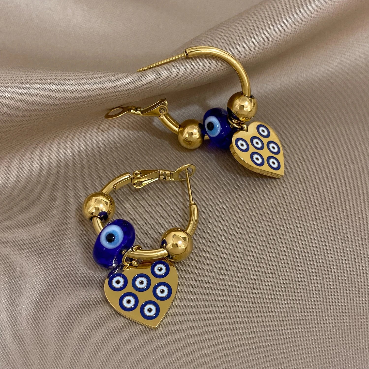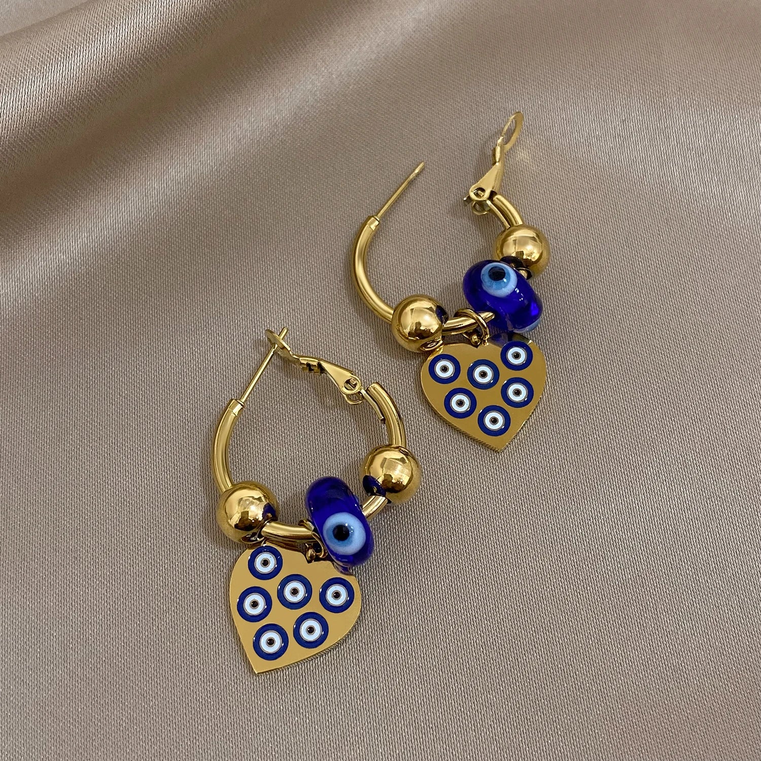 The Golden Evil Eye Heart Hoop Earrings add a touch of charm and mystique to any outfit, making them a perfect addition to your jewelry collection.