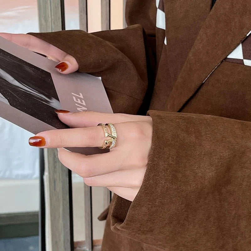 Elevate your jewelry collection with Ulippa's Layered "V" Diamond Ring, an exquisite piece that embodies luxury and elegance.