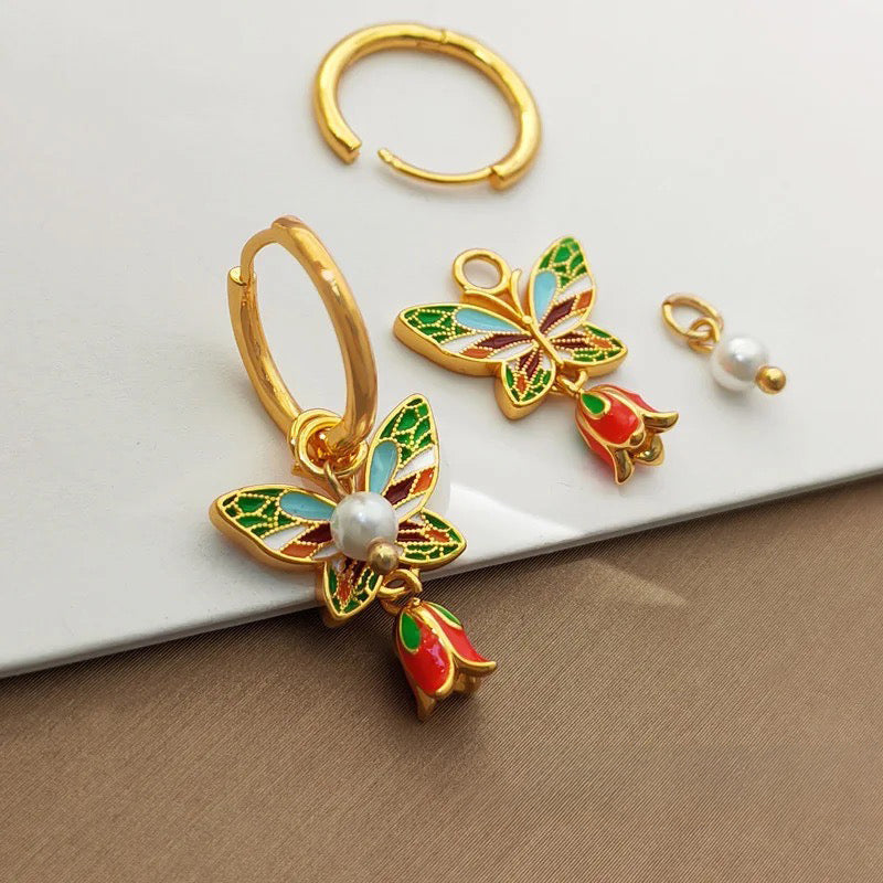 Introducing the Pastel Dainty Butterfly & Pearl Hoop Earrings by Ulippa, a charming piece that captures the essence of nature's beauty with a touch of elegance. Perfect for those who love colorful and whimsical jewelry.