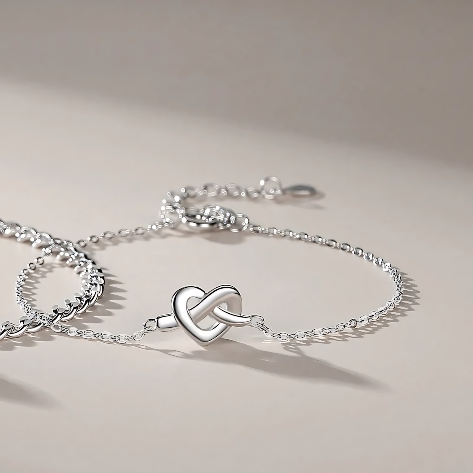 The S925 Dainty Heart Knot Love Bracelet set beautifully represents the strength and tenderness of love, perfect for couples who want to express their bond through meaningful jewelry.